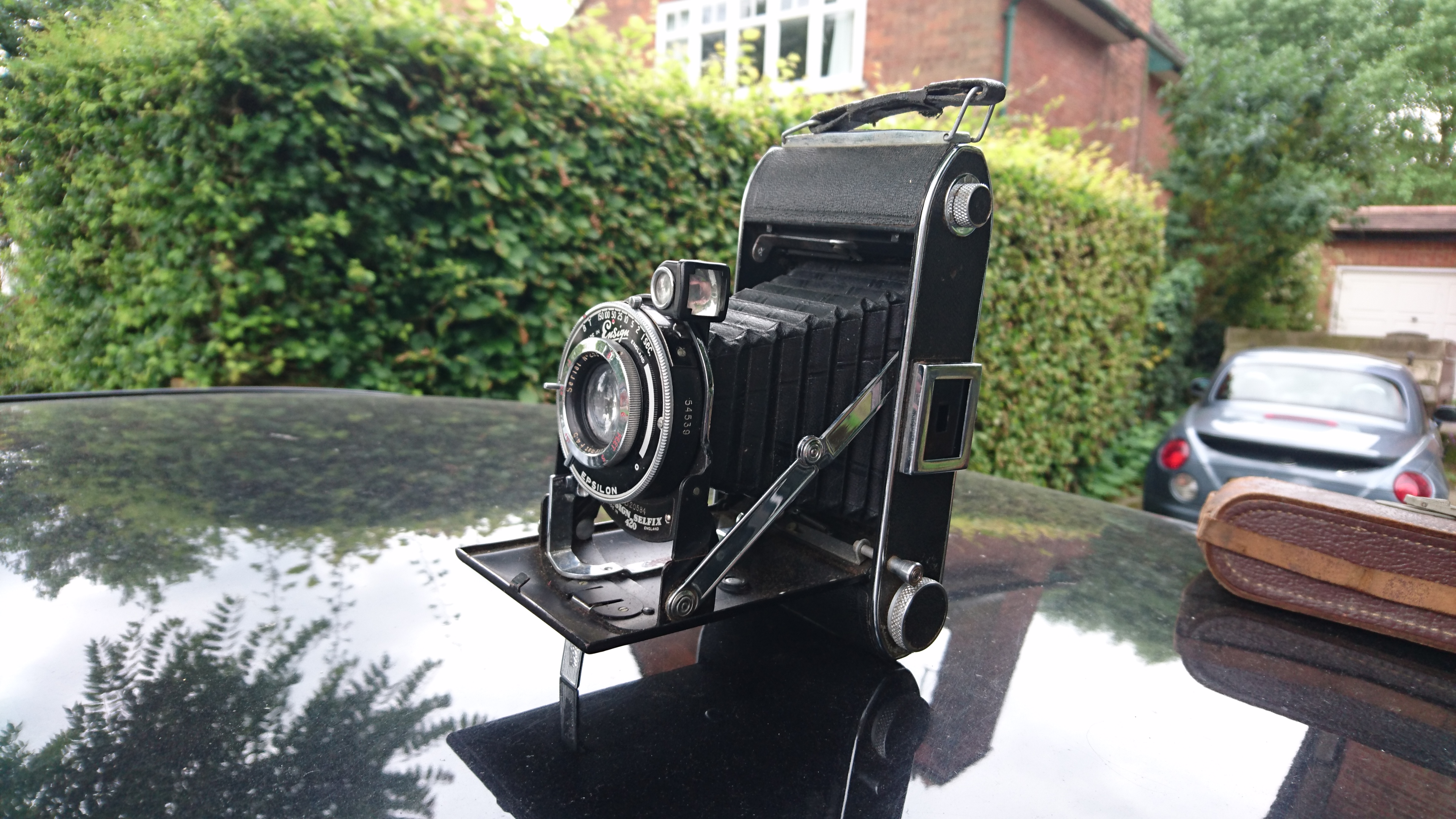 OK, this one is a little odd. I was asking around for any "old stylie" cameras as a friend was looking for an old bellows type camera to use as a theatre prop. Realising my dad had some old cameras I got in touch and found he was looking to "relocate" them as they were just gathering dust in a cupboard drawer. After sending a photo of it to my friend he didn't thing it would be suitable as it wasn't old enough but I still decided to take the camera anyway as it looked kinda retro.