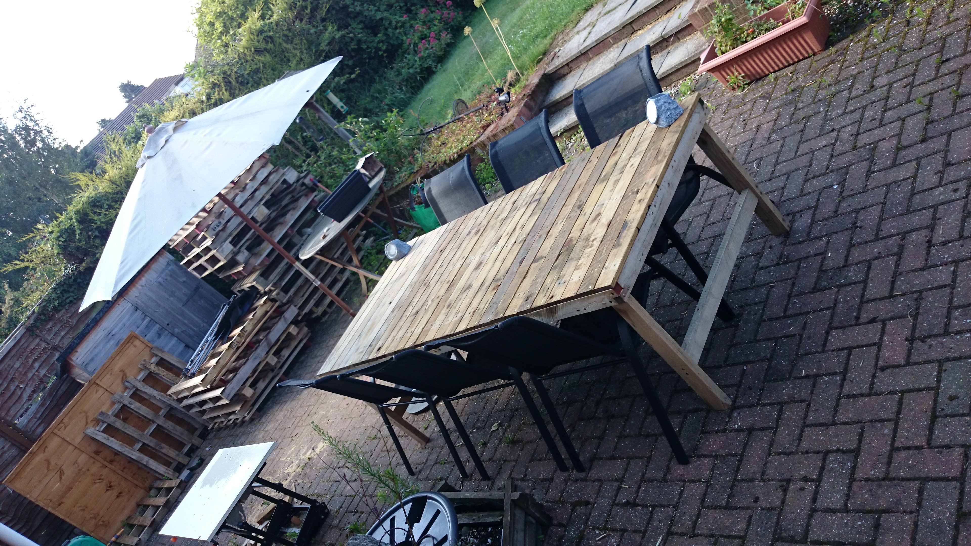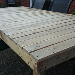 I acquired a small stack of wooden pallets from a construction site and after deciding that using them as firewood was a bit of a waste, I thought it would be nice to make a garden table out of the good parts from them. There are plenty of example pallet table ideas out there on the interweb but this one is different as it's "my" pallet table!