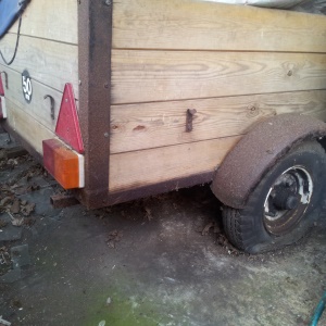 The first stage was to strip the trailer down to the frame. The wooden sides actually looked OK. The wood screws holding them to the frame on the other hand needed replacing as they had rusted. I then completely sanded down the metal frame and repainted it with black rust treatment paint. After carefully removing the old stickers from the wooden panels, I varnished them with boat varnish to make sure they would be properly water proof again.
